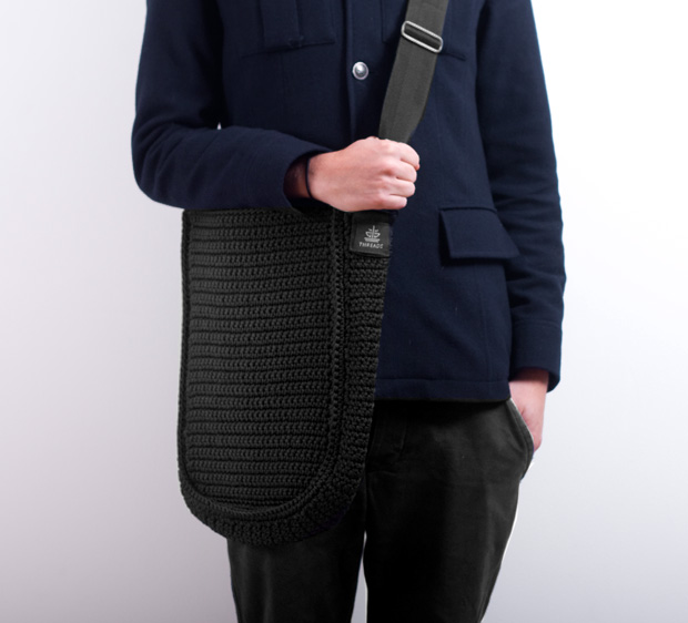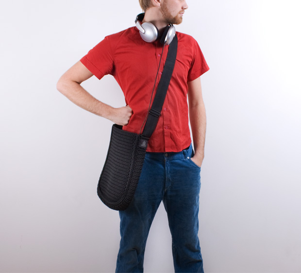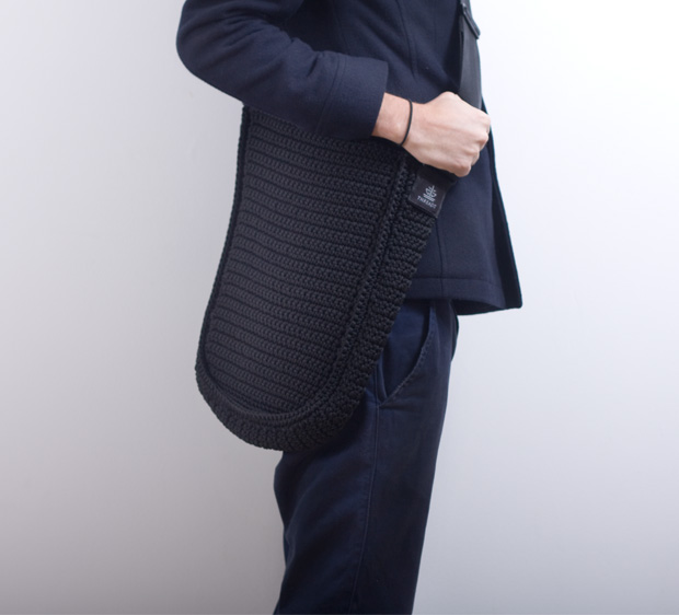 The woven Grannybag, made of recycled materials, curves and shapes naturally around the body and is perfect as a shopper and carrying bag.